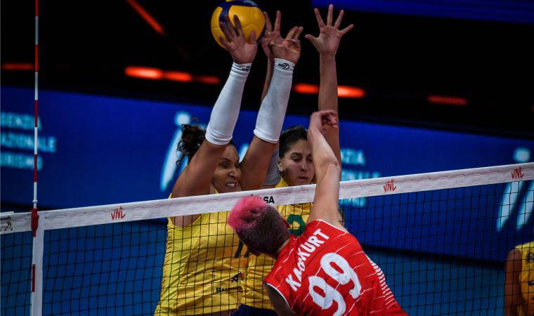 Ligde Güney Kore'yi 3-1 yenerek dörtlü finale kalmayı garantileyen Filenin Sultanları, İtalya’nın Rimini şehrindeki organizasyonda Brezilya'ya 18-25, 16-25, 27-25, 15-25 set sonuçlarıyla kaybetti.