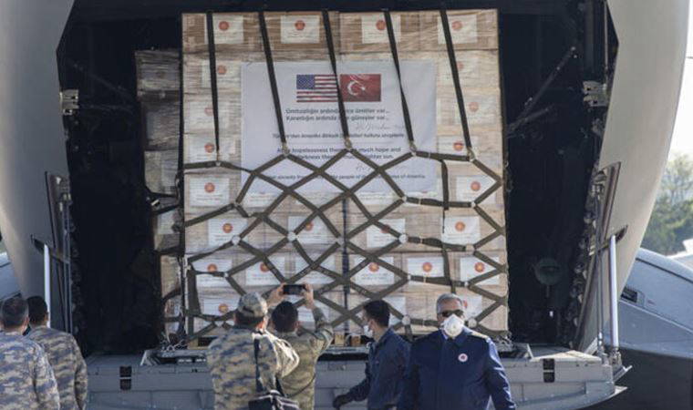 Milli Savunma Bakanlığı, Sağlık Bakanlığı ile birlikte hazırlanan malzemelerin Türk Silahlı Kuvvetleri’ne (TSK) ait A400M tipi askeri kargo uçağıyla ABD’ye gönderildiğini duyurdu. Maske, N95 tipi maske, yüz koruyucu siperlik ve tulumdan oluşan tıbbi malzeme kolilerinin üzerinde, diğer ülkelere gönderilen yardımlarda olduğu gibi Türk bayrağı, Cumhurbaşkanlığı forsu ve “Türkiye Cumhuriyeti Cumhurbaşkanlığı” ibaresi ile Mevlana’nın “Ümitsizliğin ardında nice ümitler var/Karanlığın ardında nice güneşler var” dizeleri yer aldı. Ankara Etimesgut Askeri Havaalanı’ndan kalkan askeri kargo uçağı, sağlık malzemelerini ABD’nin başkenti Washigton yakınındaki Andrews Hava Üssü’ne ulaştırdı.