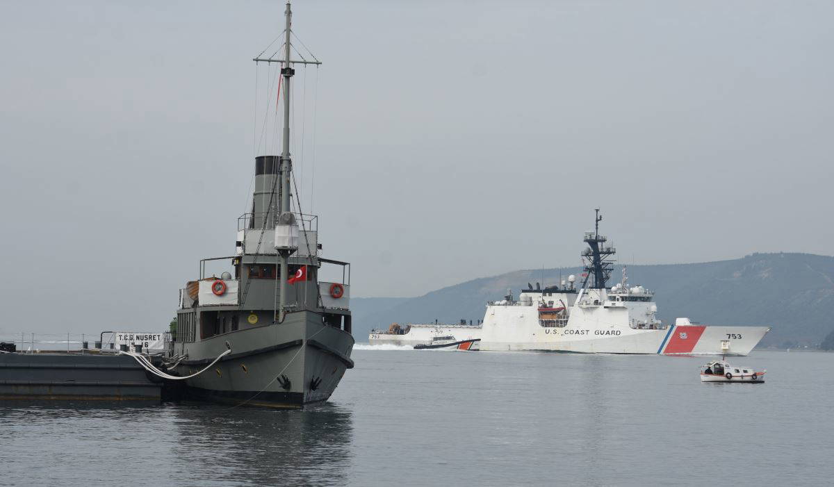 Ege Denizi'nden saat 08.00'de Çanakkale Boğazı'na giriş yapan, ABD Donanması'na ait, 753 borda numaralı 'USS Hamilton' adlı Sahil Güvenlik gemisi, saat 09.15'te Çanakkale önlerine ulaştı.