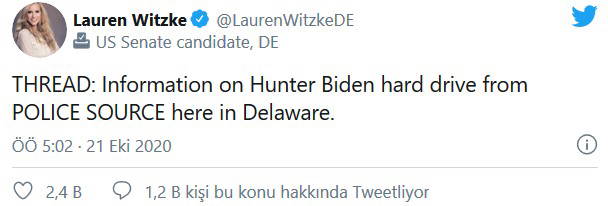Bir yıl sonra devran döndü ve bu kez Joe Biden'ın ABD Başkan Yardımcısı olduğu dönemde, oğlu Hunter Biden'ın yaptığı uluslararası iş anlaşmalarında rolü olduğunu gösterdiği iddia edilen e-postaların FBI'ın eline geçtiği haberi patlak verdi.