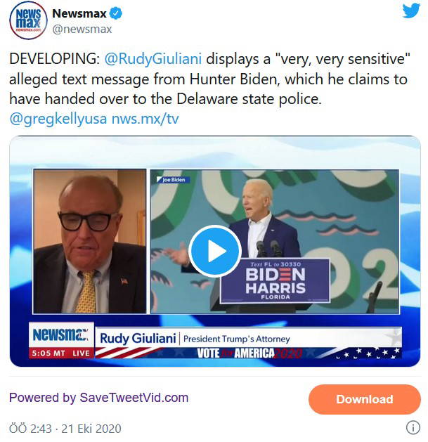 Newsmax'in ekrana çıkardığı Giuliani'nin parçalar okuduğu mesajlar kısmen karartılarak ekrana yansıtıldı. Mesajların ne zaman gönderildiğine dair tarih açıklanmadı, ancak üç yıl öncesine ait olabilecekleri ima edildi.