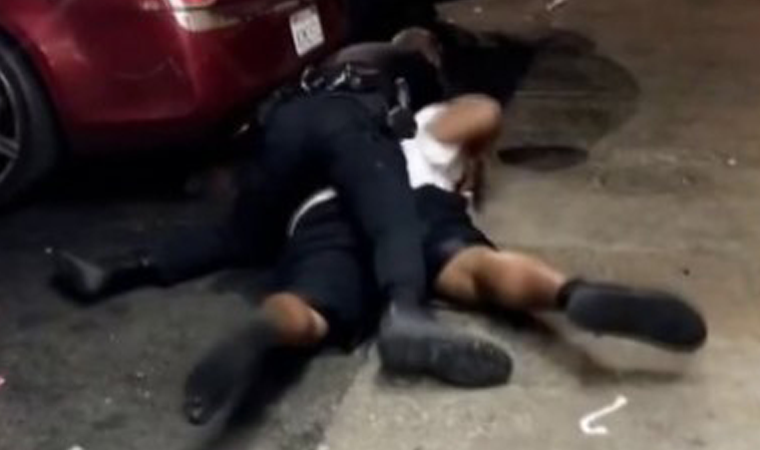 Olay yerine gelen San Bernardino polisi, siyah bir kişinin otopark alanında arabaların üstüne atladığını ve çevreye rahatsızlık verdiğini tespit etti. İsmi açıklanmayan kişiyle bir süre boğuşan polis, şüpheliyi vurarak öldürdü.