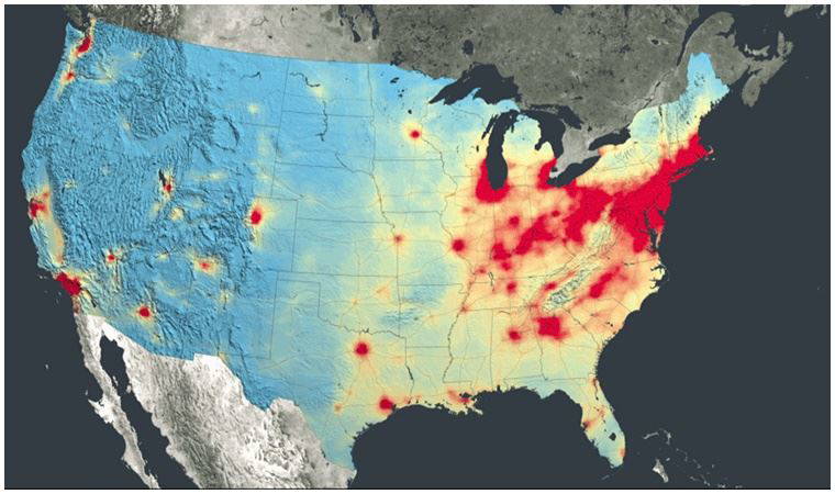 NASA'nın internet sitesinde yayınlanan Goddard Uzay Uçuş Merkezi uydu verilerine göre, ABD’nin kuzeydoğu kesimindeki metropol şehirlerde nitrojen dioksit hava kirliliği seviyesinin, martta son 4 yılın ortalamasına kıyasla yüzde 30 düştüğü kaydedildi.
