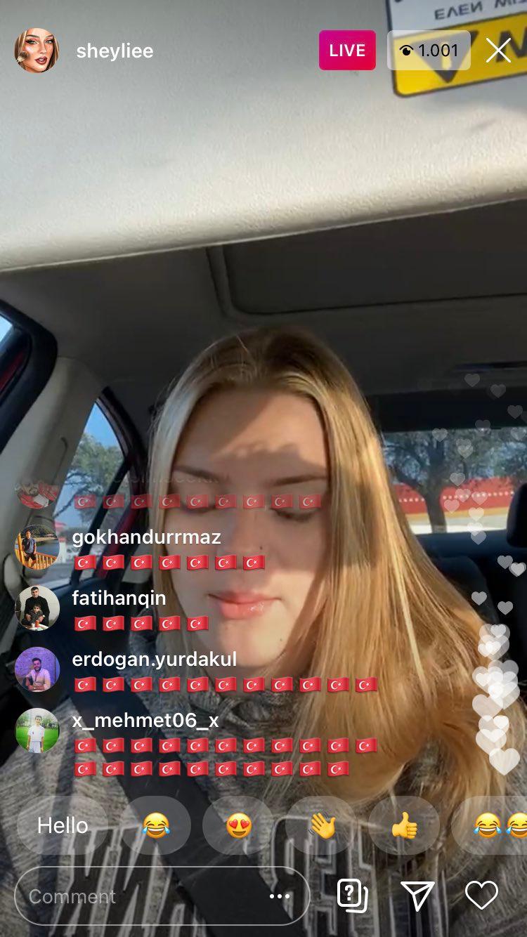 Sheyenne Shea'nın bu paylaşımının ardından yaptığı canlı yayına, Türk erkekleri tarafından sürekli olarak Türk bayrağı gönderildi.