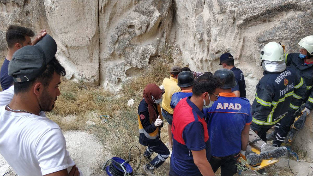 Turistik gezi için Kapadokya'ya gelen ABD'li Greencejami Cee, çıktığı kayalıklardan cep telefonu kamerasıyla fotoğraf çekmeye başladı. Bir süre sonra dengesini kaybeden Cee, yaklaşık 10 metre yükseklikten düştü.