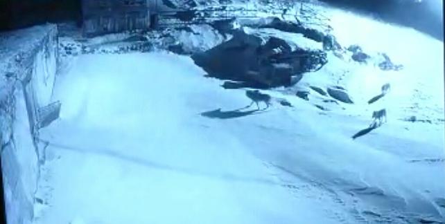 Kurtların köpeğe saldırı anı güvenlik kamerasına yansıdı.