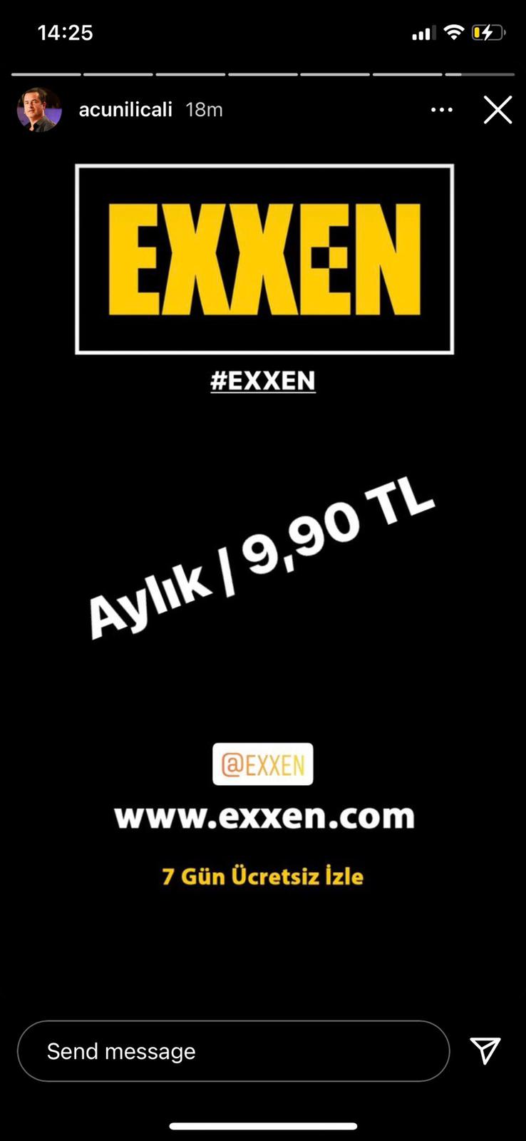 Bugün ise Instagram hesabı üzerinde paylaşımda bulunan Ilıcalı, Exxen'in aylık fiyatının 9,90 TL olacağını duyurdu.