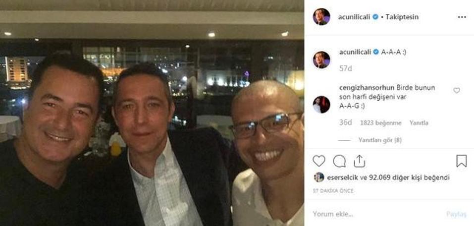 Acun ve Alex'in buluşmasında Ali Koç'da oradaydı. Acun Ilıcalı bu anları sosyal medya hesabından "A-A-A" yorumuyla paylaştı.