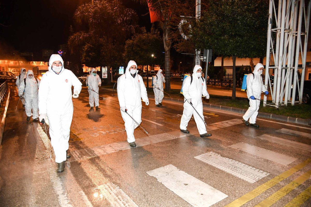 “Adana Büyükşehir Belediyesi olarak yollar, okullar, karakollar, hastaneler, işletmeler, esnaf, çocuk parkları, parklar, müzeler, belediye otobüsleri, özel halk otobüsleri, dolmuşlar gibi, akla gelebilecek her noktayı temizliyor, dezenfekte ediyoruz. İlçe belediye başkanlarımızı da topladım ve bu işin kesinlikle hafife alınmaması gerektiğini, mücadeleyi topyekûn, birlikte yapmamız gerektiğini konuştuk. İşi bölüştük. Şimdi dezenfeksiyon ve bilgilendirme çalışmalarımız devam ediyor. Dezenfekte edilmeyen yer kalmaması ve bunun tekrar tekrar yapılması için çalışmalarımız, işbirliğimiz sürüyor. Adana Büyükşehir Belediyesi olarak, koronavirüsten nasıl korunulacağına dair bilgilerin bulunduğu 1 milyon broşür bastırdık ve dağıtımı sürüyor. Adana’nın 100 muhtelif noktasına dezenfektan standı koyduk. Semt pazarlarında sadece gıda ürünlerinin satılması için de bir karar aldık.”