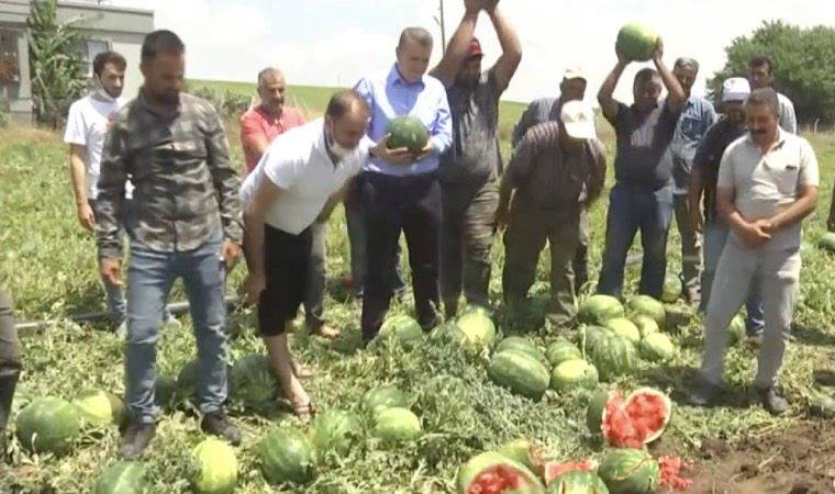 Karpuz hasadının yapıldığı tarlada ürünlerini yere atarak feryat eden çiftçilerle görüşen CHP’li Barut, ise şunları şöyledi: