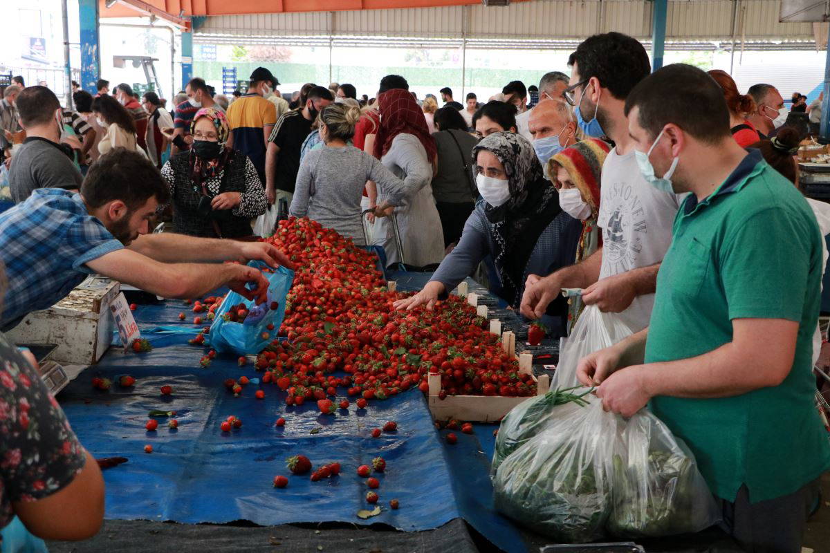 Bazı yurttaşların meyve- sebze tezgâhlarında mesafe kurallarını ihlal ederek alışveriş yapması dikkat çekti. Yoğun kalabalığın oluştuğu pazarda birçok vatandaş ise alışveriş yapmadan pazar yerini terk etti.
