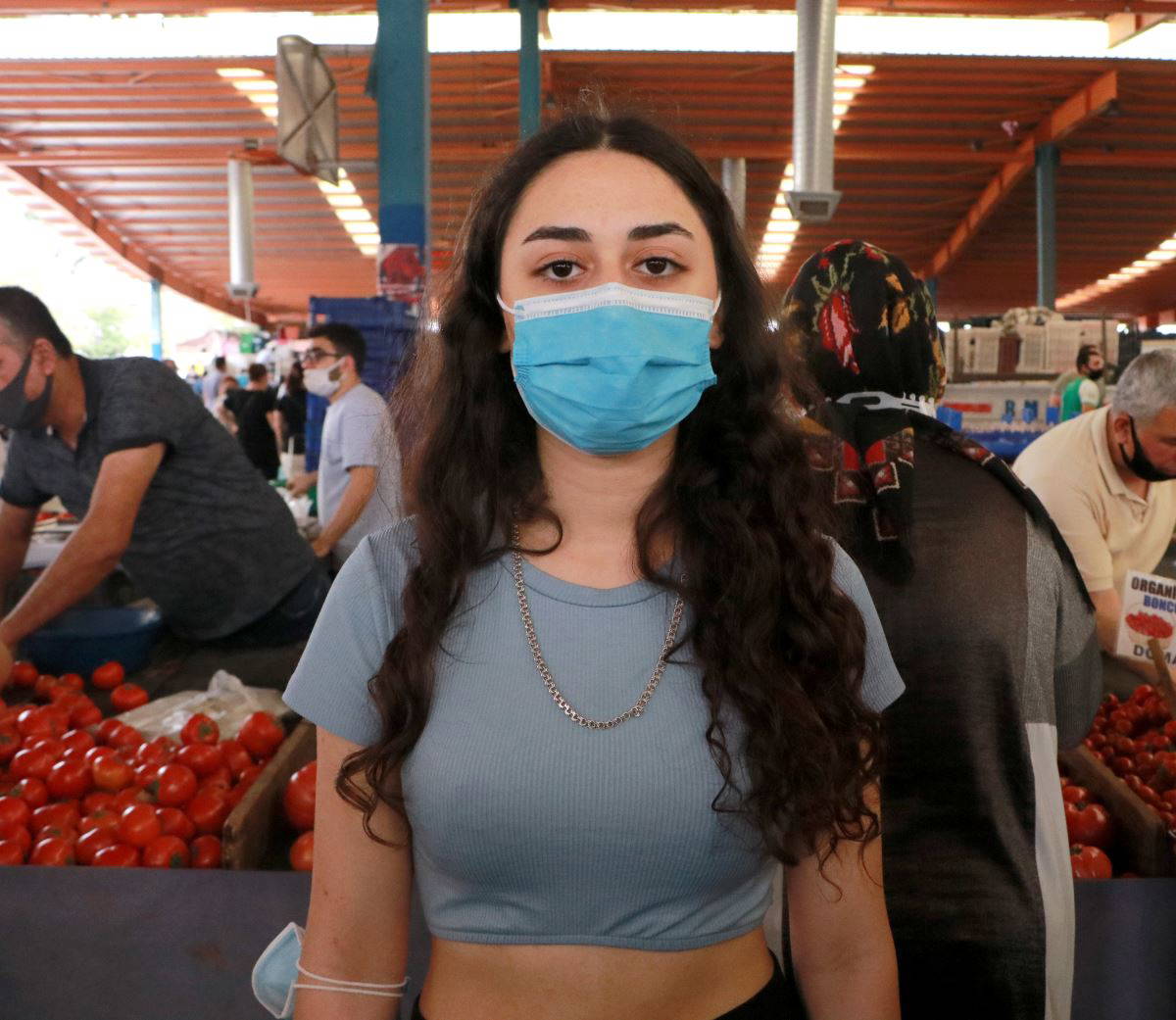 Pazar alışverişi yapmak için annesiyle birlikte gelen Aysel Özdemir, "Virüs zaten bu şekilde yayılıyor. Böyle olursa virüs bitmeyecek" dedi.