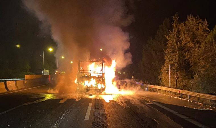 Durumu fark eden otobüsteki görevliler, aracı durdurup yolcuların tahliyesini sağladı. İhbar üzerine bölgeye itfaiye, sağlık ve polis ekipleri sevk edildi.