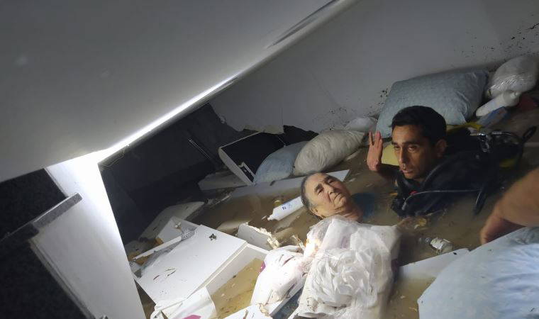 Adana'da su basan tıp merkezinin bodrum katında mahsur kalan kadını dalgıç polisler kurtardı