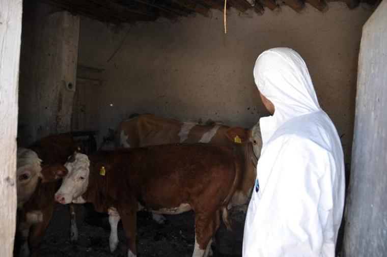 Ailenin evinin bahçesindeki bir büyükbaş hayvanın telef olduğunu gören köylüler, durumu jandarma ve Tarım ve Orman Müdürlüğü ekiplerine bildirdi.