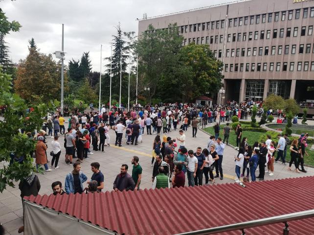 Ankara Adliyesi'nde bugün Sözleşmeli Zabıt Katibi ve Sözleşmeli İcra Katipliği klavye uygulama sınavı yapılıyor. Sınav için gelen adaylar, adliye önüne sığmadı. Adliyenin A kapısında oluşan sıra, adliye önünde S çizerek alan dışına taştı. Sıranın ucu, adliyenin etrafını dolaşarak C Kapısına kadar ulaştı.