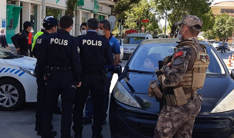 Afyonkarahisar kent merkezinde bulunan kavşakta aracıyla geçen bir yurttaştan polis uygulama noktasında durdurularak izin belgesini ibraz etmesi istendi.