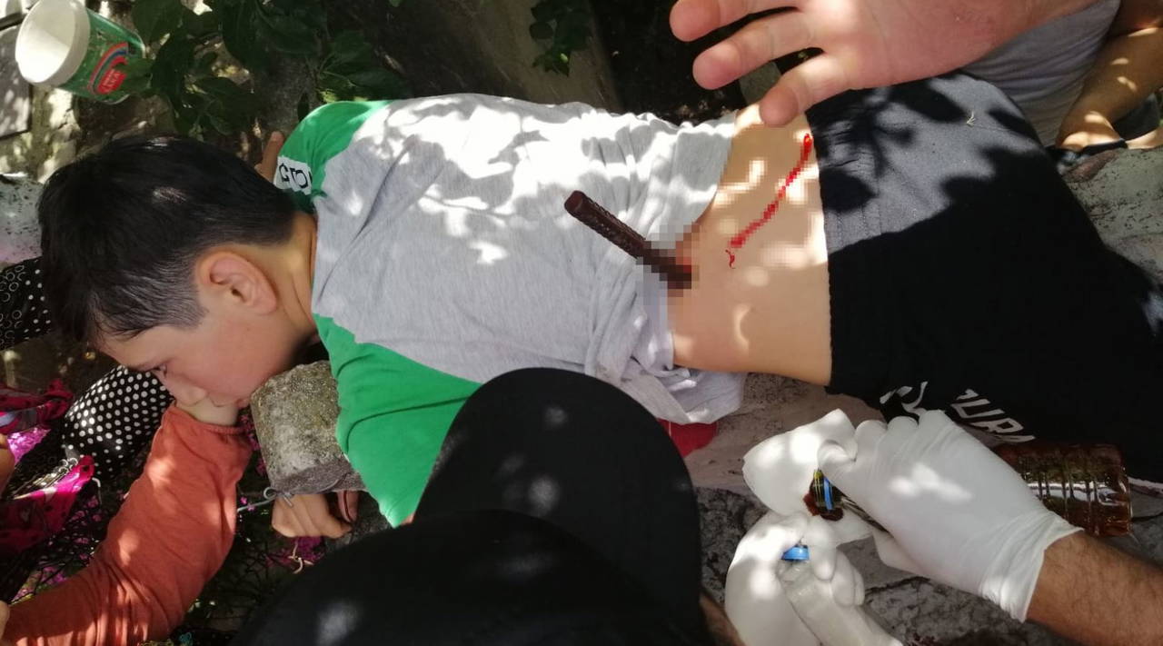 Çocuğa yerde bulunan inşaat demiri saplandı. Haber verilmesi üzerine olay yerine sağlık, itfaiye ve polis ekipleri sevk edildi. Sağlık ekiplerinin ilk müdahalesinin ardından yaralı çocuk vücuduna saplanan demirle birlikte hastaneye kaldırıldı. Vücuduna saplanan demir çıkarılan ve tedavi altına alınan çocuğun sağlık durumunun iyi olduğu öğrenildi.