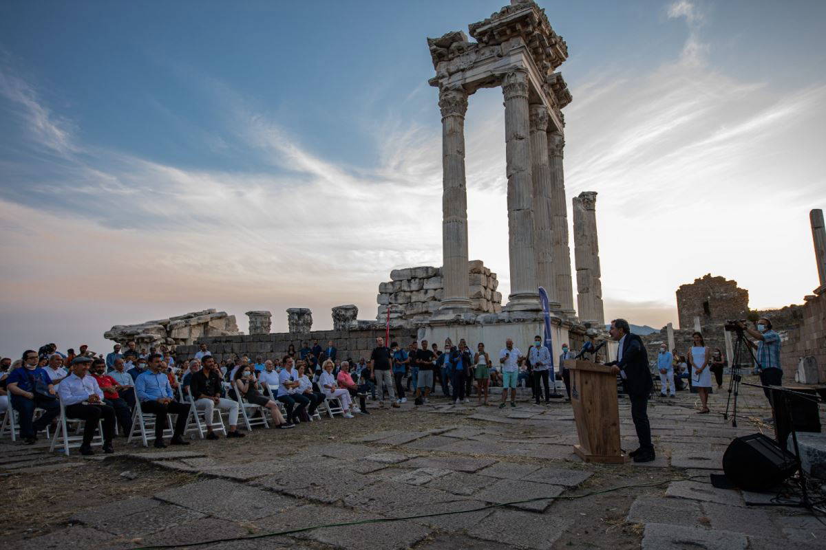 2014’te UNESCO Dünya Mirası Listesi’ne girerek dünyanın 999’uncu mirası olan Bergama’nın turizmden daha çok pay alabilmesi için kapsamlı çalışmalar yürüttüklerini söyleyen Başkan Tunç Soyer ise şöyle konuştu: “İzmir Büyükşehir Belediyesi’nin İzmir Vakfı ve İzmir Kalkınma Ajansı ortaklığı ile hazırladığı ve İzmir’in tamamını kapsayan turizm stratejimiz bu konuda bize rehberlik ediyor. Bu stratejinin içerisinde Bergama’nın çok önemli bir yeri var. Biliyoruz ki, Bergama’nın turizmde hak ettiği yere gelmesini sağlamadan, İzmir’in bütünü için de hedeflerimize ulaşmak mümkün değil” şeklinde konuştu. Zeus Sunağı’nı Berlin’den ait olduğu yere, İzmir Bergama’ya geri getirmekle ilgili de önemli adımlar atmaya başladıklarını vurgulayan Soyer, “Bunun da şüphesiz ki asıl anahtarı Bergama’nın değerini tüm dünyaya anlatmak. Zeus Sunağı’nı ait olduğu bu topraklara getirmek amacıyla yürüttüğümüz çalışmalardan biri de bugün burada protokolünü imzalayacağımız ‘Bergama Belgeseli’. Yapımcılığını ve yönetmenliğini Nihal Ağırbaş’ın yaptığı, senaryosunu ise Ömer Erbil’in yazdığı Bergama Belgeseli bu çalışmalarımıza değerli katkılar sunacak.”