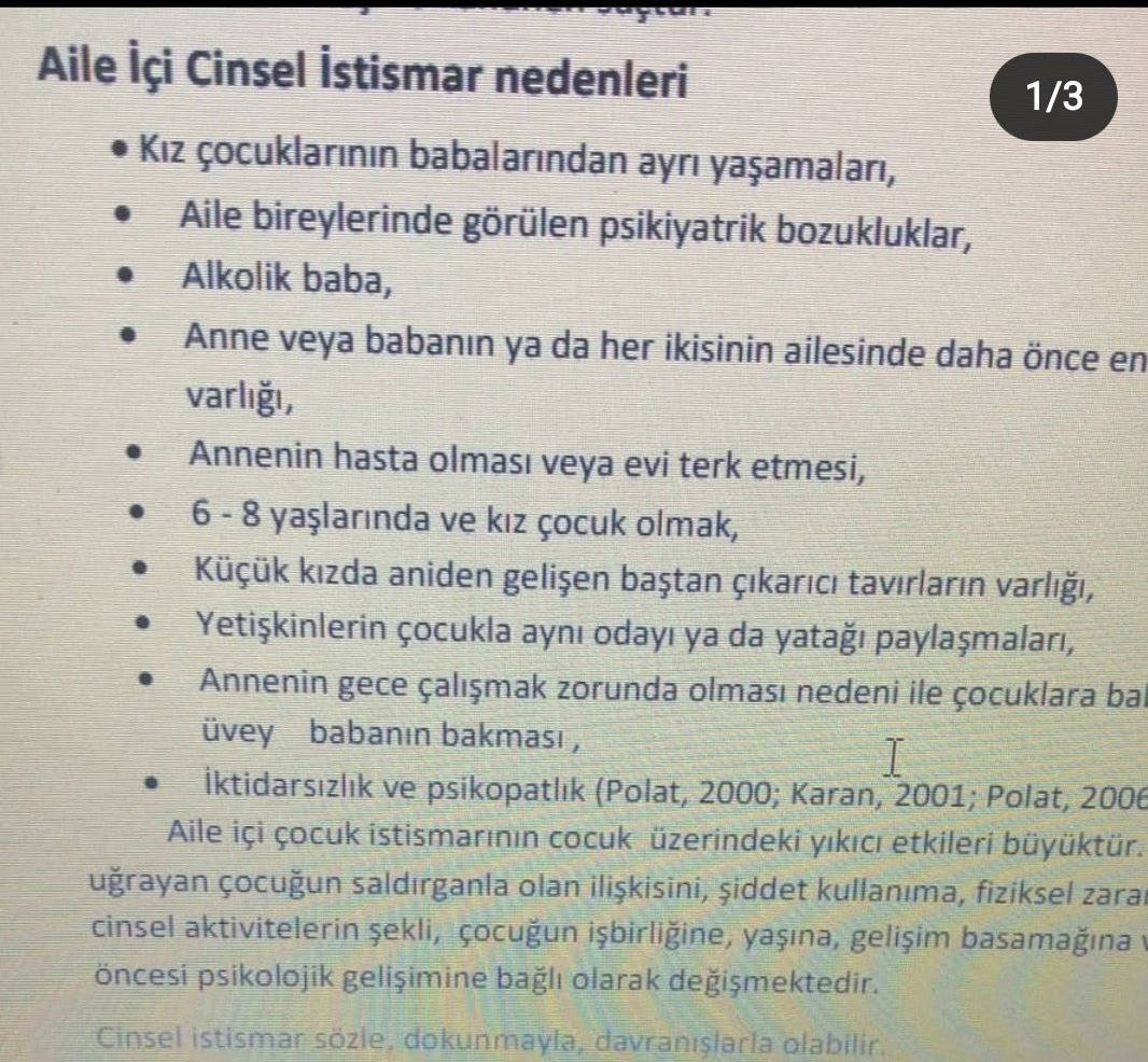 Ders notlarında, "Aile içi cinsel istismarın nedenleri" başlığı altında, “6-8 yaşında kız çocuğu olmak”, “küçük kızda aniden gelişen baştan çıkarıcı tavırların varlığı” gibi 'gerekçeler' sıralandı.