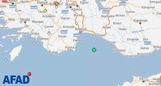 Akdeniz'de saat 12.34'te 4,3 büyüklüğünde bir deprem meydana geldi.