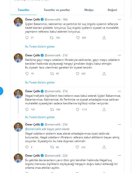 İçişleri Bakanımızı, kabinemizi ve partimizi bir suç örgütü üyesinin laflarıyla hedef alanları şiddetle kınıyoruz. Suç örgütü üyelerini siyaset ve muhalefet yapmanın referansı kabul edenleri kınıyoruz."