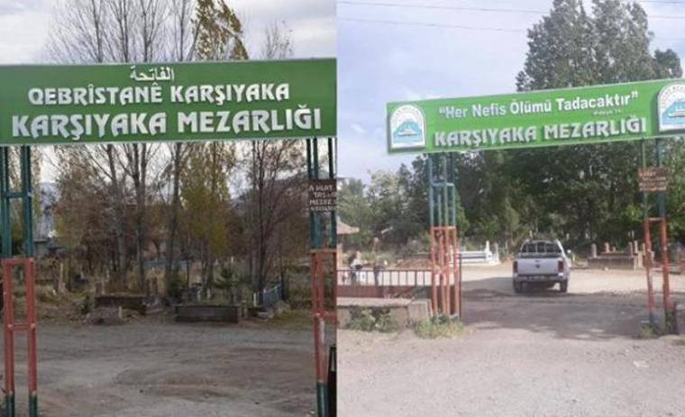 Tatvan Belediyesi, kent merkezinde bulunan 'Karşıyaka Mezarlığı'nın tabelasından 'Qebristana Karşıyaka' yazılı Kürtçe yazıyı sökerek yerine 'Her nefis ölümü tadacaktır' yazdı.