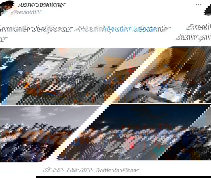 Demirtaş paylaşımında, “Emekli amiraller bekliyoruz. Hodri meydan. Destanlar bizim işimiz” diye yazdı.