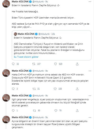 Twitter hesabı üzerinden "Biden’in Karadeniz Planını Deşifre Ediyoruz" başlığıyla bir dizi iddiada bulunan Külünk şu ifadeleri kullandı: