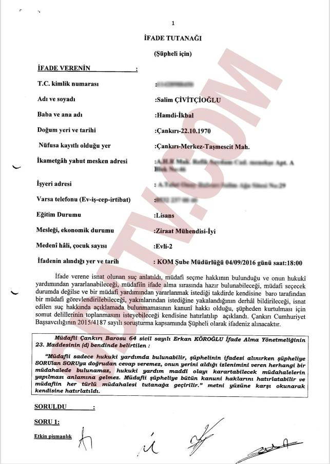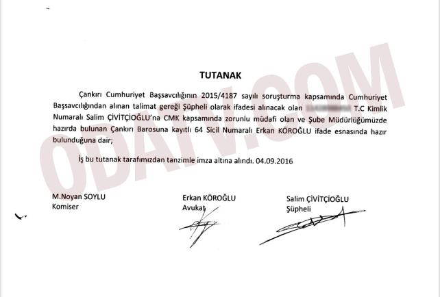 AKP’li vekil Salim Çivitçioğlu’nun Çankırı Emniyeti tarafından 4 Eylül 2016 tarihinde “şüpheli” olarak ifadesi alındı.