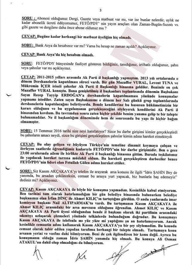 AKP’li vekil Çivitçioğlu, “Siz Kasım Akçakaya’yı telefonla arayarak arsa konusuyla ilgili ‘İdris Şahin Bey de yanımda bu arsadan çekileceksin, cemaat bu arsaya yurt yapacak biz bunlarla baş edemeyiz’ dediniz mi?” sorusuna “Kasım Akçakaya ile böyle bir konuşma yapmadım” deyip konunun kendisini ilgilendirmediği şeklinde yanıt verdi.