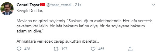 Sevgili Dostlar, Mevlana ne güzel söylemiş, "Suskunluğum asaletimdendir. Her lafa verecek cevabım var lakin, bir lafa bakarım laf mı diye, bir de söyleyene bakarım adam mı diye." Ahmaklara verilecek cevap sükuttan ibarettir...