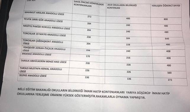 İmam hatip ortaokul ve liselerinin dolu olduğu, yenilerinin yapılması gerektiği yönündeki hükümetin açıklamalarına CHP’den yanıt geldi. CHP Mersin Milletvekili Alpay Antmen konuyla ilgili yaptığı yazılı basın açıklamasında imam hatip okullarında doluluk oranının yüksek çıksın diye kontenjanlarının düşürüldüğünü ifade ederek “Mersin’de birçok imam hatip okulunda toplam öğrenci sayısı 4130 iken bu yıl 2040’a indi. İktidar da çıkıp ‘imam hatipler tam dolu bu yüzden yenilerini açmalıyız’ diyor. Oysa gerçek bambaşka. İmam hatipler üzerinden siyasi rant elde etmek isteyenler enflasyon, işsizlik, dış ticaret açığı rakamlarını aşağı göstermek için her türlü rakam oyununu yapan iktidar imam hatiplerde de aynı katakulliye başvurdu. Bu iktidarda her numara var” ifadelerini kullandı.