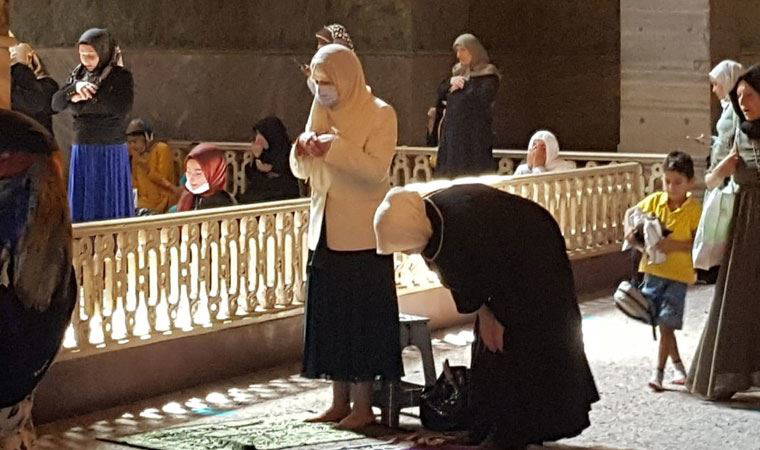 Meral Akşener, saat 15.00 sıralarında Ayasofya'ya geldi. Akşener makam aracından indiği sırada kendisini görüntülemek isteyen gazetecilere el salladı. Akşener'in Ayasofya bahçesine girer girmez başına beyaz şal örttüğü görüldü. Meral Akşener'e ziyareti sırasında eşi, oğlu ve yeğeni eşlik etti. Meral Akşener'in ziyareti yaklaşık yarım saat sürdü.