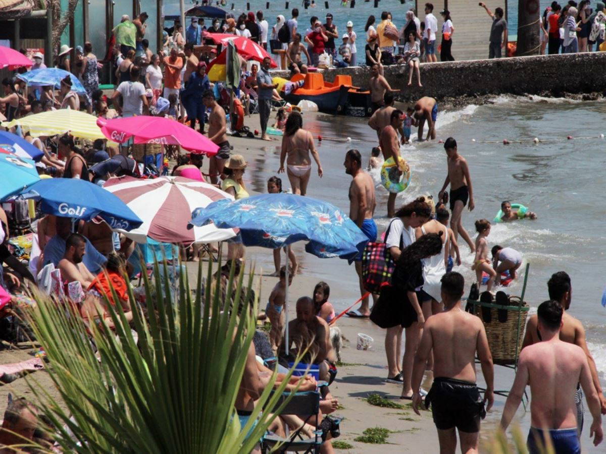 Plajdaki kalabalığı değerlendiren bir vatandaş, “Kim kime dum duma. Bu virüs dışarıda değil de denizin içinde bulaşmıyor mu? Bakın herkes birbiri ile yan yana. Bunu söyleyeme gerek yok ki. Biz bile şu an yan yanayız. En güzeli eğer burasının 350 kişilik şezlongu varsa kapıya görevli dikecek. 350 kişi girdikten sonra pandemiden dolayı kapıdaki görevli 350 kişiden sonrasını almayacak” dedi.