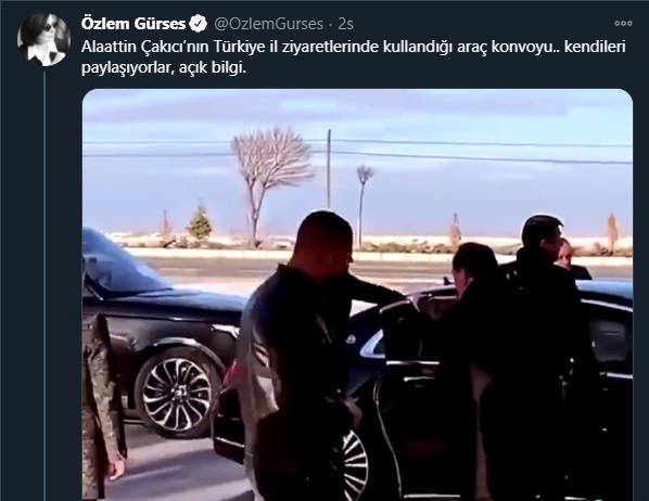 Gürses, asıl olarak Tiktok'ta paylaşılmış olan videoyu Twitter hesabından "Alaattin Çakıcı’nın Türkiye il ziyaretlerinde kullandığı araç konvoyu.. kendileri paylaşıyorlar, açık bilgi" diyerek paylaştı.