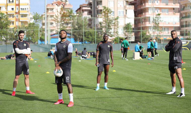 Aytemiz Alanyaspor’un başarılı golcüleri Junior Fernandes, Djalma Campos, Welinton De Souza ve file bekçisi Jose Marafona, antrenman sonrası verdikleri sosyal mesafeli pozla dikkat çekti.