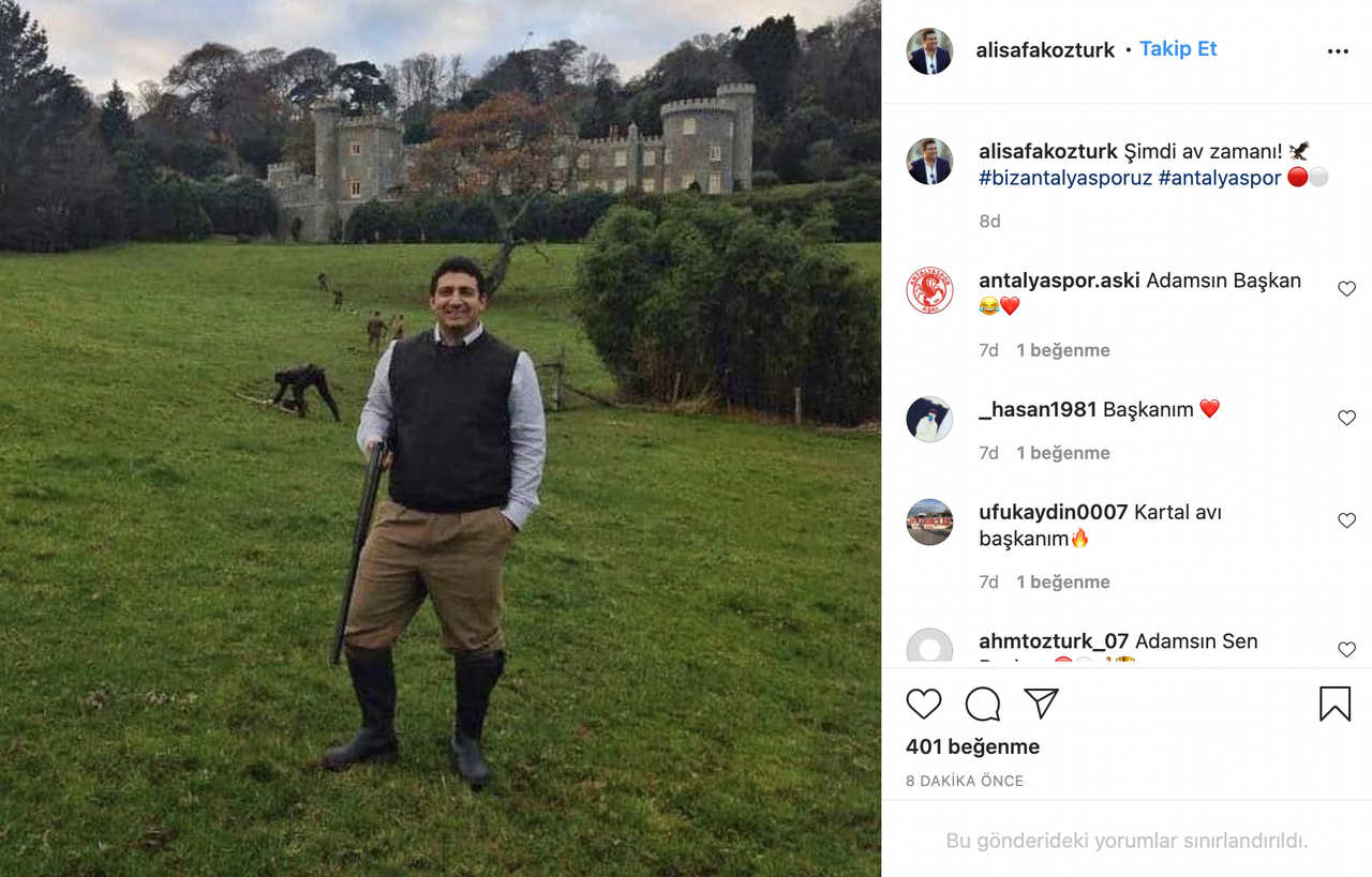 37 yaşındaki iş adamı, "#bizantalyasporuz" etiketine yer verdiği paylaşımda "Şimdi av zamanı!" ifadesini kullandı.