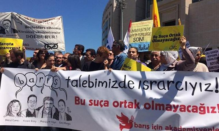 Almanya Demokratik Bilim İnsanları Birliği (BdWi), "Bu suça ortak olmayacağız" başlıklı bir bildiri imzalayan ve "terör örgütü propagandası" suçlamasıyla yargılanan akademisyenler için Almanya Dışişleri Bakanı'ndan destek istedi.