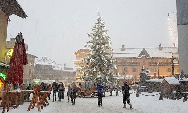 Megeve meydanında kurulu dev çam ağacı ışıltılı. İnsanlar 7’den 70’e renk renk, cıvıl cıvıl. Kafelerden hafif yayılan müzikler, şerefe diye kalkan kadehler, hafta sonu kaçamağında, dar alanlarda samimiyetle iç içe çevrelenen kahkahaların uçuştuğu masalar, romantik takılanlar, yoldan gelen geçeni izleyenler...