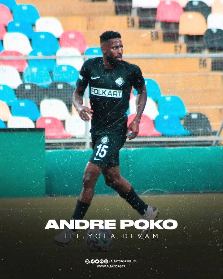 Süper Lig ekiplerinden Altay’da transfer harekatı devam ediyor. İç transferde de hamleler yapan siyah-beyazlı yönetim, geçtiğimiz sezon devre arasında kadrosuna kattığı Andre Poko’nun sözleşmesini 1 yıl daha uzattı. Sözleşme yenilendiğini sosyal medya hesaplarından duyuran İzmir temsilcisi, paylaşımın şu ifadeleri kullandı: "Profesyonel Futbol Takımımızın formasını başarıyla giyen, geçtiğimiz sezon kazandığımız şampiyonlukta pay sahibi futbolcumuz Andre Poko ile 1 yıllık yeni sözleşme imzalanmıştır. Yeni sezonda da formamızı giyecek olan futbolcumuza başarılar dileriz."
