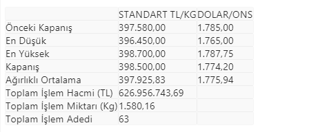 Tüm metallerdeki toplam işlem hacmi ise 632 milyon 396 bin 612,79 lira oldu.