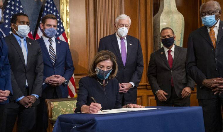 ABD'de Kongre binasına yönelik saldırıdan tam bir hafta sonra, aynı binada bu kez Temsilciler Meclisi üyeleri Başkan Donald Trump'ın azlini oylamak için bir araya geldi.