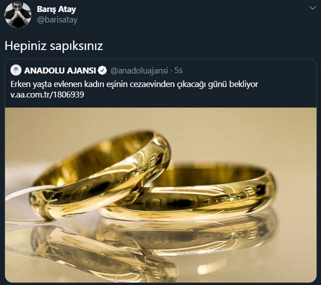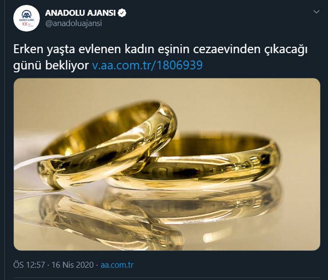 Anadolu Ajansı, 2012 yılında 14 yaşında imam nikahıyla evlendirilen çocuk haberini "Erken yaşta evlenen kadın, eşinin cezaevinden çıkacağı günü bekliyor" şeklindeki sıkanda başlıkla verdi. İzmir'de yaşayan ve 14 yaşında evlendirilen G.Ö'nün mağdur olması haberde, "Çocuğa cinsel istismar" yasasına dayandırıldı.