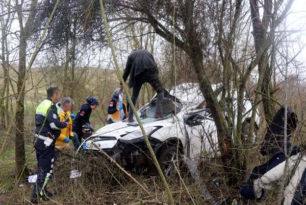 Sağlık ekipleri yaptıkları incelemede otomobil sürücüsü ile eşi Didem Bozkurt'un hayatını kaybettiğini belirledi.