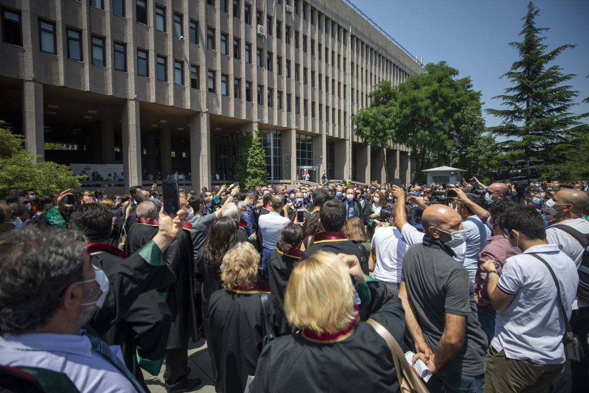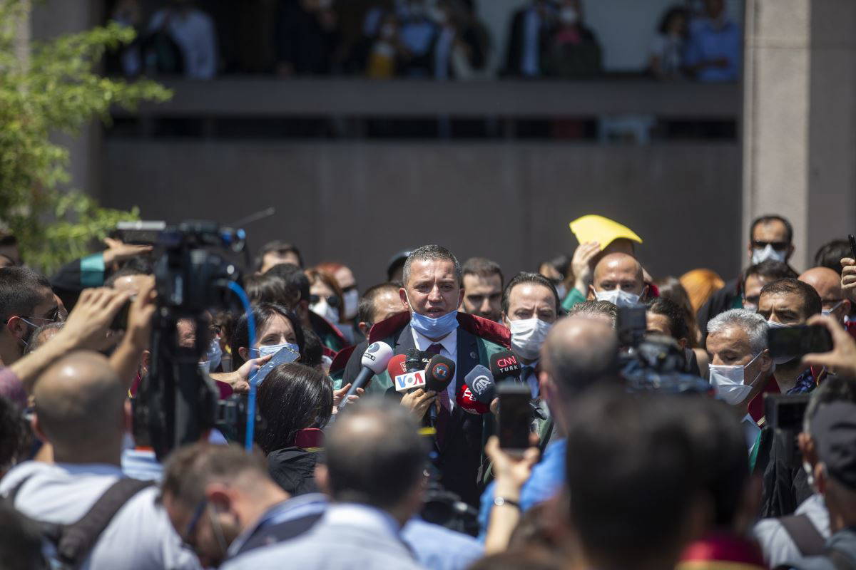 "Bugün bizi burada bir araya getiren şey bir baskı rejiminin her fırsatta masasının altından çıkarıp gösterdiği sopaya hiçbir zaman boyun eğmediğimizi ve hiçbir zaman da eğmeyeceğimizi tarih önünde çocuklarımıza anlatma borcumuzdur. Şimdi de teslim alamadığınız baroları parçalayarak cübbelerimize ilik açmaya düğme dikmeye çalışıyorsunuz. İstiyorsunuz ki yargının son ayağı da iktidara bağlansın. İstiyorsunuz ki herkes sussun. Bizleri çok iyi dinleyin. Hepsi bir ağızdan, hiçbir baskıya boyun eğmeyeceklerine, mesleklerine ve Cumhuriyet'e sahip çıkacaklarına dair bu ülkenin teker teker her bir çocuğuna yemin ediyorlar; susmuyoruz, korkmuyoruz, biat etmiyoruz."