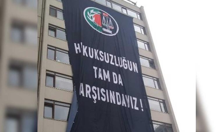 Ankara Barosu, binasına asılan "Hukuksuzluğun tam karşısındayız" yazan afiş dikkat çekti.