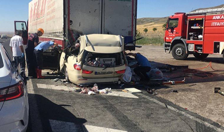 Gurbetçi ailenin içinde bulunduğu Almanya plakalı otomobil, Konya-Ankara kara yolunun 185. kilometresinde, emniyet şeridinde park halindeki tıra arkadan çarptı.