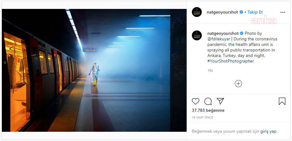 Koronavirüs salgınıyla mücadelede yaptığı çalışmalarla öncü olan Büyükşehir Belediyesinin Ankara Metrosu’nda dezenfeksiyon ve ilaçlama çalışmaları, National Geographic Your Shot’un sayfasında yayınlandı.