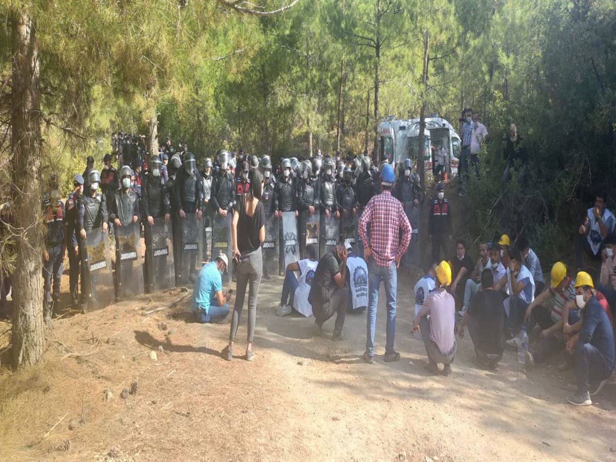 Bu sırada gruptan 1 kişi, gözaltına alındı. Kalabalık, bölgede bekleyişe geçerken, alana çevik kuvvet ekipleri sevk edildi.